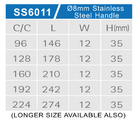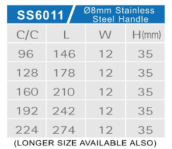 Center to Center: c/c 96mm, c/c 128mm, c/c 160mm, c/c 192mm, c/c 224mm