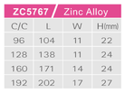 Center to Center: c/c 96mm, c/c 128mm, c/c 160mm, c/c 192mm