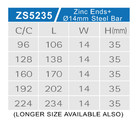 Center to Center: c/c 96mm, c/c 128mm, c/c 160mm, c/c 192mm, c/c 224mm