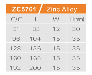 Center to Center: c/c 3", c/c 96mm, c/c 128mm, c/c 160mm, c/c 192mm