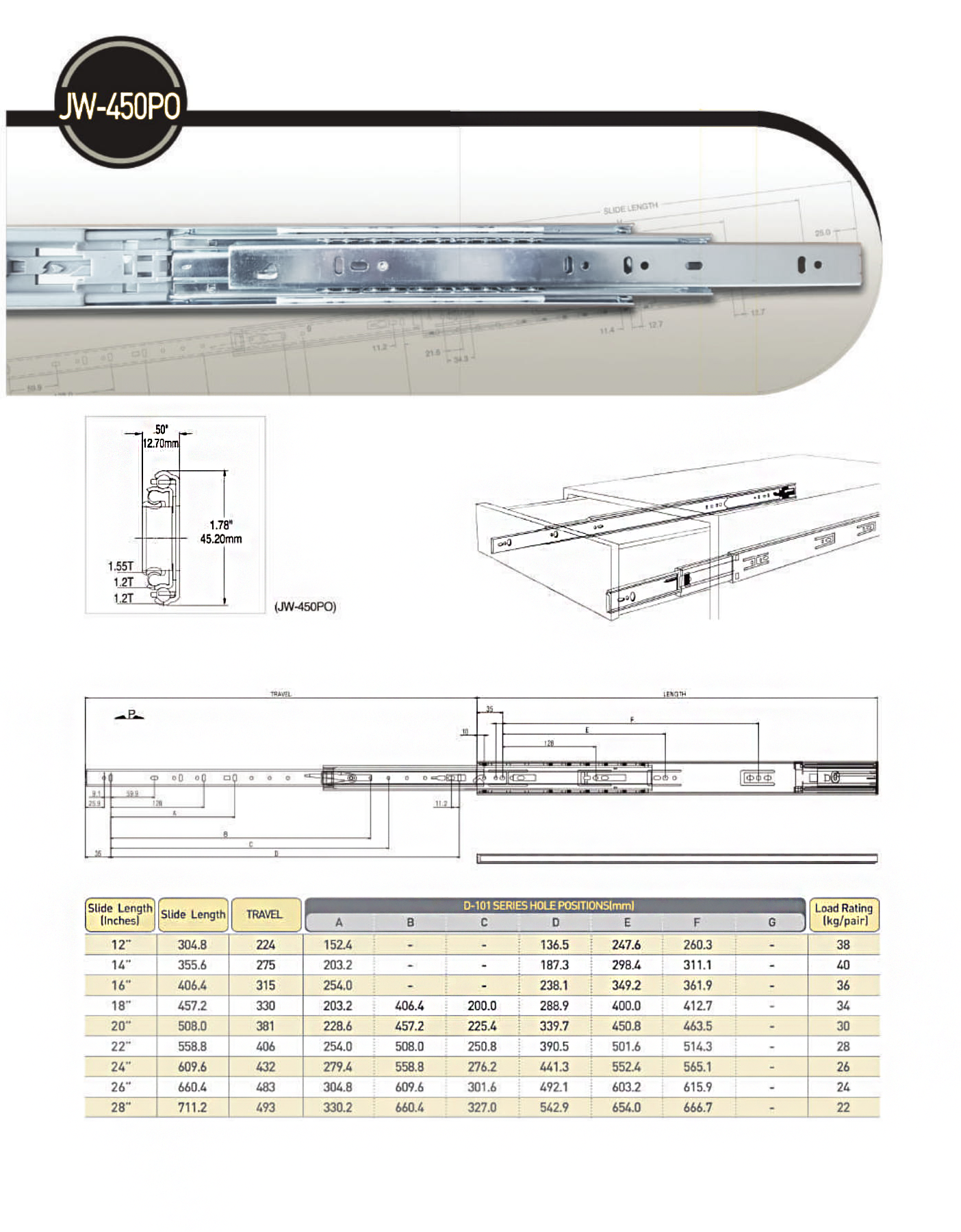 JW-450PO Desk & File Drawer Slides